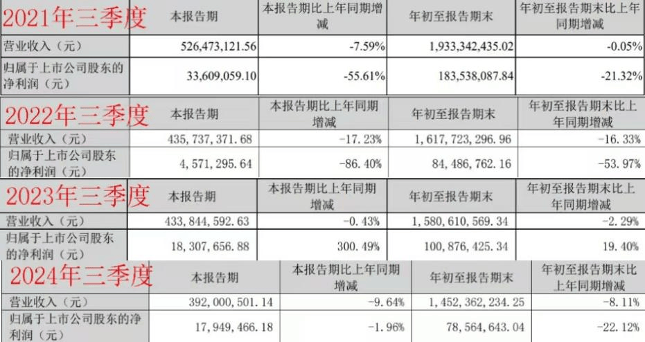 回溯财据,2021年至2024年前三季度,煌上煌营收别离为19。33亿元、16。18亿元、15。81亿元、14。52亿元,呈现逐年递减态势,2025年同期收入规模已缩水至2021年的约71%,相当于五年间营收体量缩减近三成。