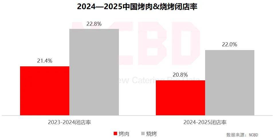 6、2024—2025年烤肉品类闭店率为20。8%,取上一年比拟微降;取烧烤比拟,烤肉的闭店率要略低