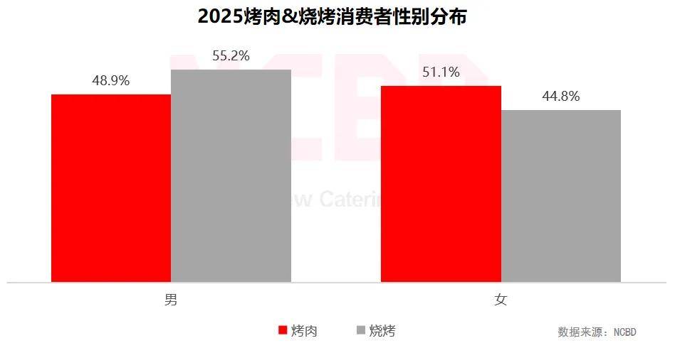 2、从性别来看,女性消费者正在烤肉消费中占比略高,达到51。1%,男性占比48。9%。取烧烤比拟,烤肉的女性消费者比例更高