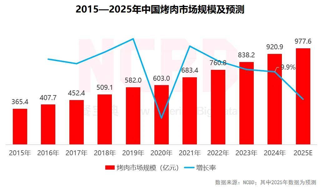 烤肉汗青长久,早正在两汉期间就有系统完整的烤肉烤食。烤肉的焦点就餐形式是消费者自从或由办事人员协帮,正在特定烤具上间接炙烤、烹制事后调味或未经调味的肉类、海鲜、蔬菜等食材。烤肉现在不只仅是一种烹调方式,更是一个融合了社交、个性化定制取多元化消费场景的餐饮细分市场。烤肉次要可分为韩式烤肉、日式烧肉、中式烤肉、自帮烤肉以及融合烤肉等多品种型。其行业特征包罗:社交性强、参取感强、地区差别较着、食材驱动、供应链依赖性强、风味多元化。1、NCBD(餐宝典)数据显示,2024年中国烤肉市场规模达920。9亿元,同比增加9。9%;估计2025年中国烤肉市场将会迫近千亿大关