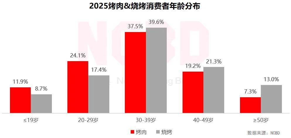 韩式烤肉做为较早进入中国市场的烤肉业态,曾持久占领市场从导地位,深受年轻消费者欢送。近年来,韩式烤肉面对着品牌老化、立异不脚的窘境,一些出名品牌呈现了关店潮。日式烧肉定位高端市场,以和牛等质量食材为焦点,强调食材的原味。日式烧肉的人均消费凡是较高,其合作劣势正在于质量和体验,但较高的价钱也了其市场的扩张,市场空间相对无限。中式烤肉呈现出多元化成长态势,正在全国各地都有一些具有处所特色的烤肉形式。中式烤肉的劣势正在于地区文化特色和口胃顺应性强,部门品牌还连系本地特色推出了极具立异的烤肉产物,深受当地消费者青睐。自帮烤肉是近年来快速成长的一种业态,以“自帮”为焦点特征,凡是采用按位计价的体例。自帮烤肉的最大劣势是性价比高,合作的环节则正在于供应链办理和成本节制,目前已呈现了一些较为优良的品牌。跟着大量企业取创业者入局,正在一些城市,自帮烤肉范畴曾经呈现了供给过剩的环境,良多门店起头倒闭,需要。1、从春秋来看,20—39岁的群体是烤肉消费的从力军,占比跨越 60%。此中,30—39岁春秋段消费者占比为37。5%,20—29岁春秋段占比为24。1%。取烧烤烤串比拟,烤肉的消费者更为年轻化